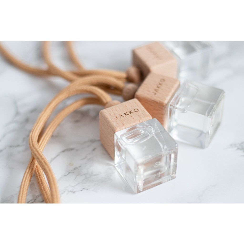 Malý skleněný flakonek, který postupně uvolňuje vůni díky prosakování do dřevěného víčka. Ach. Ideální na pověšení do malých prostor jako je třeba skříň – jen si to představte, vždycky, když otevřete, ovane vás vlna zenu. A to se k rozhodování, co na sebe, fakt hodí!
